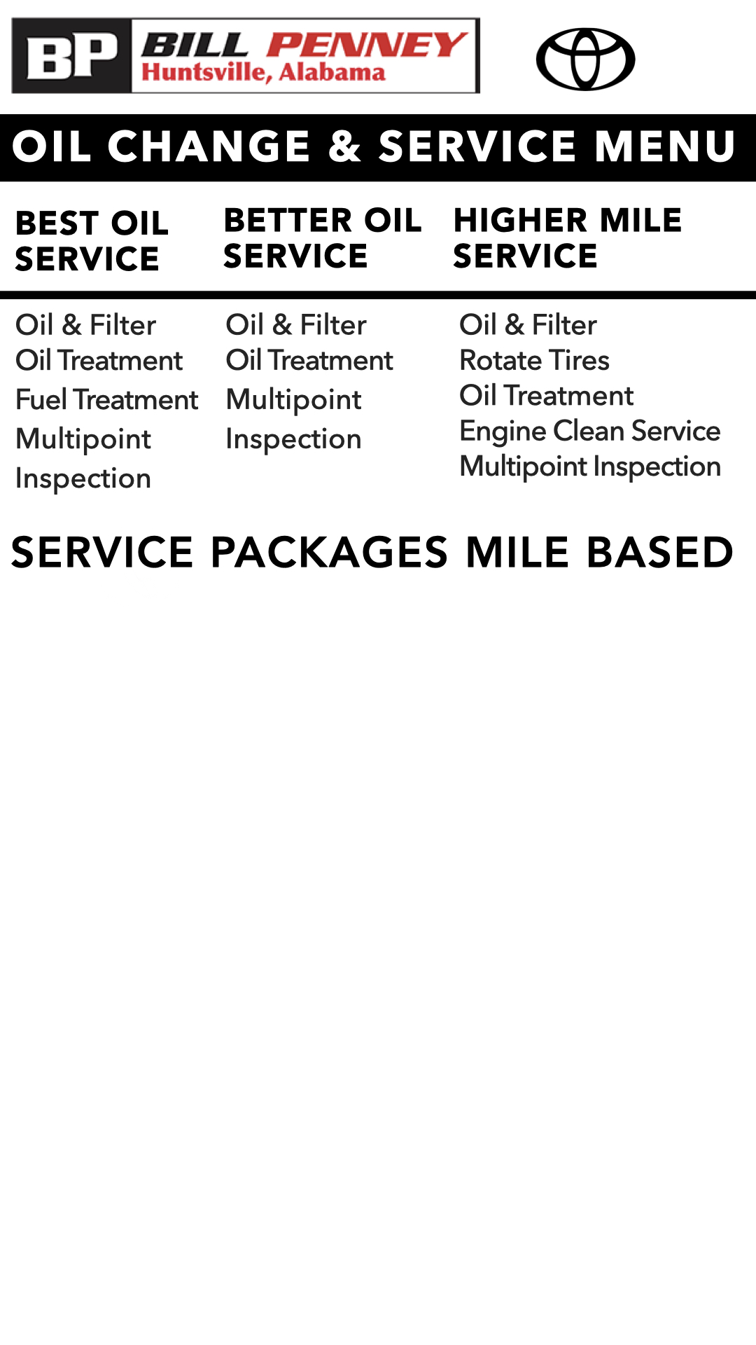 Ask For Information On Any Service or Any Recommended Maintenance